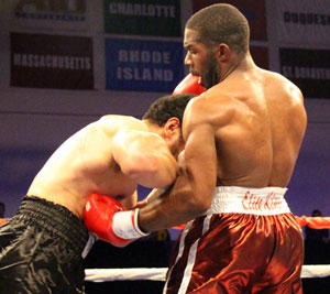 Hometown heavyweight contender Bryant Jennings closed out his breakthrough year in style Saturday night with a monumental knockout of Tongan tough guy Bowie Tupou in a nationally televised main event from Temple University's McGonigle Hall. Jennings defended his USBA heavyweight crown, probably improved his #5 IBF world ranking, and kept his career ascension going strong, all on his North Philly turf in front of his growing fan base. The end of the fight came courtesy of a booming right uppercut that felled the bigger Tupou flat on his back. At first it did not appear that he would even attempt to beat the count, but sure enough, Tupou made it to his feet a moment before referee Blair Talmadge reached ten. Nonetheless, Talmadge called an end to the fight at 1:37 of round five.
