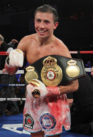 Middleweight champion Gennady Golovkin turned back the gutsy challenge of North Philadelphian Gabriel Rosado Saturday night at the Theater at Madison Square Garden. The fight was a bloody and brutal affair with the champion retaining his crown at 2:46 of the 7th round when Rosado's trainer Billy Briscoe halted the fight to save his man from further punishment. Leading up to the bout, much was made of Golovkin's stellar reputation as a real world-beater in the sport. His astounding amateur record of 345-5 and undefeated run as a pro (24-0, 21 KO) had most experts and fans convinced that the Philadelphian had no chance of winning the fight, or even lasting more than a round or two. The fact that Rosado was moving up in weight made those predictions that much stronger. However, there was much mystery surrounding Golovkin going in, and no one was completely certain that his reputation was warranted. In the end, Rosado did not win the fight, and Golovkin proved himself to be a top-notch champion with the skills to beat most of the other fighters out there. But Rosado was not steamrolled by GGG, nor was he sent back to Philly with his head hung low. Rosado was bloodied in the fight and stopped just after the midpoint of the bout, but he too proved his worth as a serious challenger and a boxer with a future. To be clear, the champion won a resounding victory Saturday night, and there was no question about it. He controlled the fight with his weighty left jab, thudding right hand, and masterful footwork. Golovkin was able to cutoff the ring and maneuver Rosado into the corners and against the ropes with ease. The challenger managed to slip and slide much of Golovkin's artillery at first, but could not stop him from moving forward and eventually wearing him down.