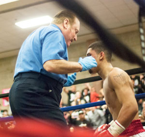 Everyone at the Armory was ready to see the birth of a brand new boxing star, and Santiago did his part to keep the expectations surrounding him sky-high. His performance was exactly what his fans had hoped for. Santiago charged out at the bell and took control of the bout immediately. Milton pressured his frightened foe around the ring, tossing serious punches all the while. Suddenly after about one minute had elapsed, Santiago whipped a hard left hook to the body that sent Molina crumbling to the canvas.