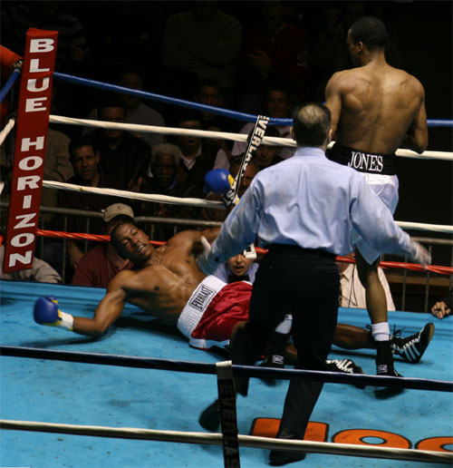 Welterweight prospect Mike Jones made his debut at the Blue Horizon a successful one with a frenetic second round KO over Dario Esalas in the main event at the legendary fight club Friday night (03/06/09). Jones started fast and kept the action going for the length of the abbreviated bout. His opponent was overmatched but game, and did his best to stay in with the North Philly wrecking machine. But Jones kept moving forward and kept landing his heavy shots until he got what he had set out for. As Jones' career blooms, there are many comparisons to welterweight legend Tommy Hearns of Detroit. With Jones' height (5'11"), weight, and punching power, I can see the parallels. But for me, I'd say he's more a skinny Sonny Liston than a Hitman Hearns. Jones has a sullen, stalking, square-shouldered style. He keeps his hands... (MORE)
