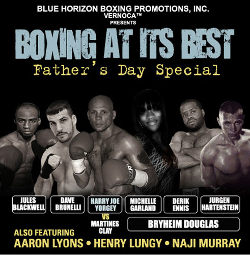 FIGHT NIGHT AT THE BLUE HORIZON FRIDAY Harry Joe Yorgey returns to the Blue Horizon Friday night in the ten-round jr. middleweight main event against Edson Aguirre. In Yorgey's last visit to the Blue three years ago, he won his bout, but suffered a broken jaw in the process. Friday he will put his 18-0-1 record on the line. Also on the card will be Derek Ennis, Jules Blackwell, Hammerin' Hank Lundy, Bryheim Douglas, a heavyweight match between Dave Brunelli & Aaron Lyons, a couple of pro debuts, and more. The first bell is scheduled for 7:30.