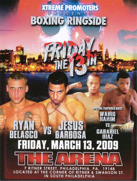 December 16: 2007 PHILLY BOXING SCHEDULE FILLING IN The schedule of boxing events for next year has already begun to form, and the first show practically comes right off the 2007 bat. On 1/11, Peltz Boxing will open the year with an event at the New Alhambra in South Philly. On 1/26, Power Productions will stage a card at the National Guard Armory in Northeast Philly. Then on 2/9, the Blue Horizon starts its year on North Broad Street. 2007 promises the continued rise of Mike Jones & Chazz Witherspoon, the return of Gabe Rosado, and much more.