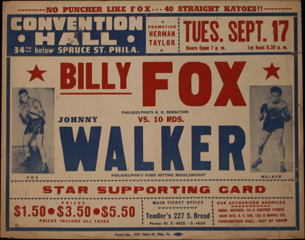 Billy Fox vs. Johnny Walker September 17, 1946 - Philadelphia Convention Hall (KO #41 of 43-bout knockout streak)