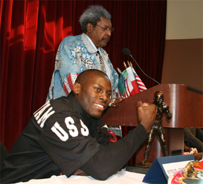 Steve Cunningham with his Briscoe Award with Don King in the