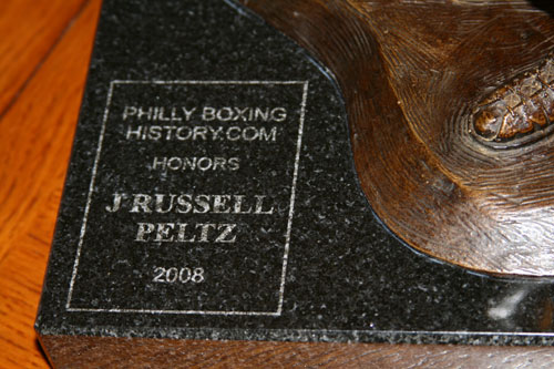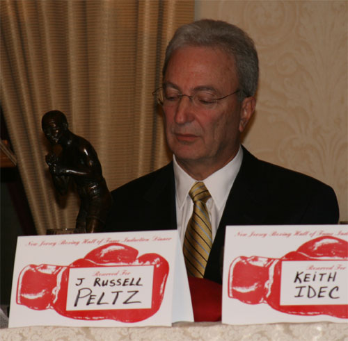 J Russell Peltz & son Daniel at the NJ Boxing Hall of Fame Banquet The Peltz family at the Venetian in Garfield, NJ NJ Hall of Famer Russell Peltz on the HOF dais Russell's Briscoe Award The Briscoe Base BACK TO WINNERS
