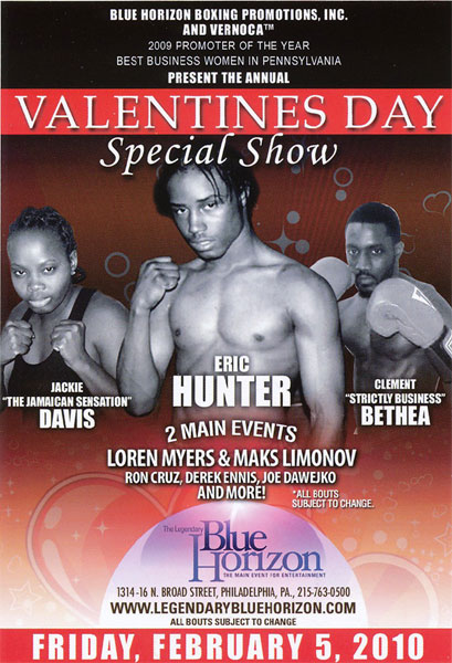Derek Ennis vs. Edwin Vasquez February 05, 2010 - Philadelphia Blue Horizon (advertising postcard)