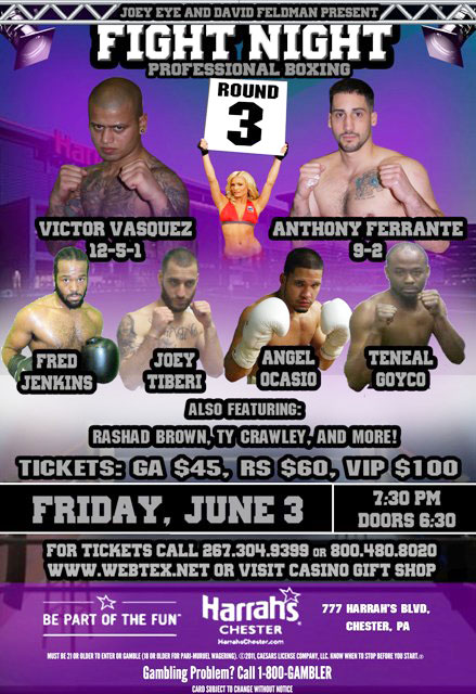 Victor Vasquez vs. Gustavo Dailey II Jun. 03, 2011 - Chester, PA Harrah's Casino & Racetrack Unofficial Poster by Philly Boxing History