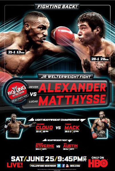 Devon Alexander vs. Lucas Matthysse Yusaf Mack vs. Tavoris Cloud Jun. 25, 2011 - St. Charles, MO Family Arena