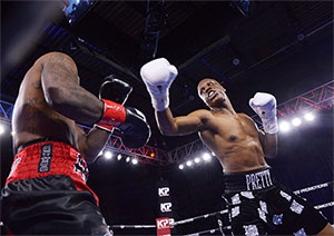 Philly light heavyweight prospect Atif Oberlton remained undefeated with a one-round knockout over St. Louis journeyman Vaughn Alexander in the main event at the 2300 Arena promoted by Marshall Kauffman's Kings Promotions. Seven additional fights rounded out the show witnessed by a small live crowd at the South Philly venue. |