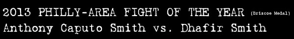 For the first time in Briscoe Award history, no fight qualified as the PHILLY fight of the year. During 2013, only four fight cards, with just 22 total bouts, took place within the Philadelphia city limits. None of these could be called the fight of the year. Therefore this year, we added a special award to recognize the best fight in the Philly-Area, since our fighters filled out numerous boxing shows in neighboring towns like Chester, Valley Forge, Bethlehem, etc.