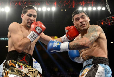 In April, Garcia defended his championship against wily old former champ Zab Judah, in Judah's backyard of Brooklyn. Danny was in total control of the bout until the proud home-towner rallied toward the end of the fight. After 12-tough rounds, Garcia won a unanimous decision, in a good learning experience for the still-developing young champion. In September, Garcia faced feared puncher Lucas Matthysse of Argentina. Most fans and media expected the touted Matthysse to destroy Garcia, much like he had done against Lamont Peterson earlier in 2013. While everyone prepared for Matthysse to prove he was one of the best pound-for-pound boxers in the world, Garcia prepared for Matthysse, and the results were spectacular.