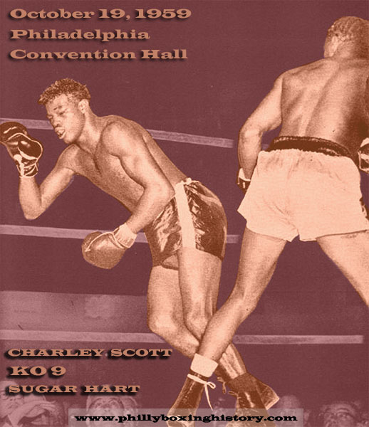 | 1959 - Charley Scott TKO9 Garnet 'Sugar' Hart at Convention Hall in West Philly | ||||