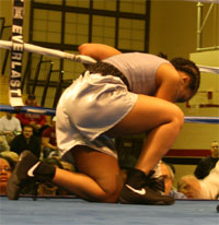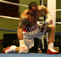 along the ropes. Martinez got up but Pasley hurt him again