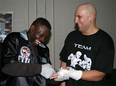 Former champ Buster Drayton trains Nasia Brown.