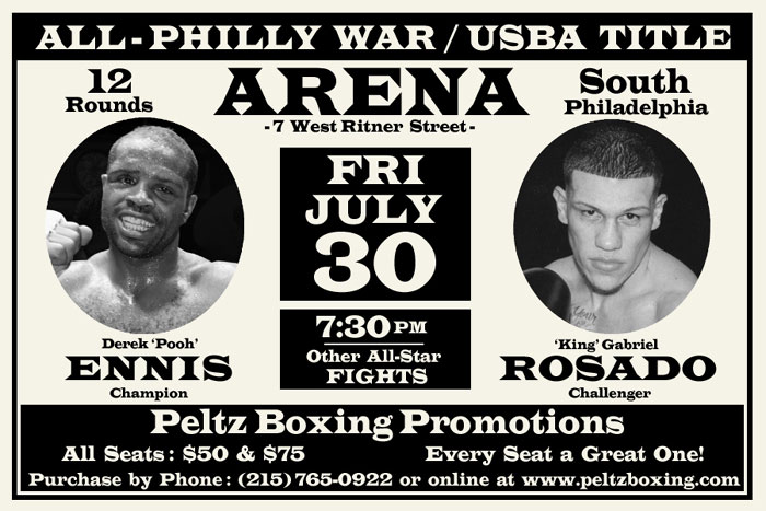 PHILLY SUPER FIGHT! Philly boxing fans finally have a major fight to look forward to. We're not talking about a local guy traveling half way around the world to take on a top opponent. No, this one will happen right here in our backyard. On July 30, Derek Ennis will defend his USBA junior middleweight title against Gabriel Rosado in a 12-round fight to be held at the South Philly Arena. This match feels like a throwback to the Spectrum days of yore when contenders faced each other right here in the city of brotherly love. Those were the days when Philly was a real boxing capital. It's been a long time since such an attractive all-Philly fight was staged, and this one should not disappoint. Keep watching this space for ongoing coverage as the bout nears. |