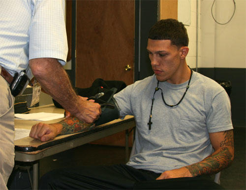 Ennis and Rosado both looked extremely fit and ready for battle at the weigh in. They cruised through their pre-fight medical exams and waited for the call to hit the scales. When they stepped up on the scale, Rosado first and Ennis right after, their weights were identical - 153 even - further thickening the plot line that says this match is a toss up. The fighters posed for photos and exchanged handshakes. Their respective teams also cordially wished each other well.