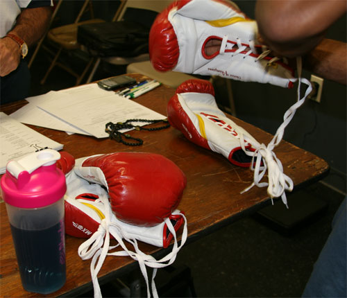 PA Commission Executive Director Greg Sirb announced the weights, along with the names of the officials assigned to the main event. Referee Gary Rosato will be the third man in the ring, while George Hill, Pierre Benoist and Joe Pasquale will be the judges. The fighters chose their gloves (red, white and yellow Everlast Pro Mex) and the mood continued to be loose until someone in the Ennis camp noticed the gloves were 8 ounce models, instead of the 10 ouncers they expected. PA regulations state that 10 ounce gloves are to be used for bouts above the welterweight limit. However, after a quick check of the contracts and rulebooks, the commission explained that since this fight is sanctioned by the USBA, their rules trump those of the Keystone State.