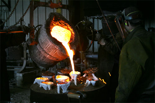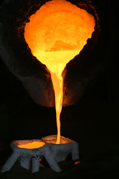 WE HAVE BRONZE! The Joey Giardello Statue took another step forward on Tuesday (11/23) when the bronze was poured at the Laran Bronze Foundry in Chester, PA. The molten metal that you see in the posted photos is the actual material of the statue. Currently the seven-foot Joey is like an un-made 3D puzzle. Several individual molds were filled with liquid bronze heated to about 2400 degrees. After cooling, the white ceramic molds were shattered and removed from the raw bronze. The next steps are the assembly, welding and polishing of the statue. Assembly begins next week. The final work won't be placed on Passyunk Avenue until the Spring, but the wait will be worth it.