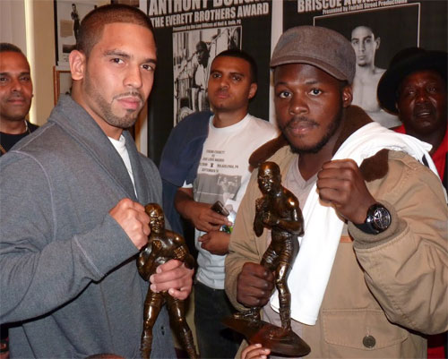 The Veteran Boxers Association clubhouse, where the Briscoe Awards were held, was packed with fans and fighters that included Steve "USS" Cunningham, Stanley "Kitten" Hayward, Henry "Toothpick" Brown, Sidney "Sweet Pea" Adams, Richie Kates, Charles Brewer, Bobby "Boogaloo" Watts, Curtis Parker, Mike Everett, Bryant Jennings, Nate Miller, Ivan Robinson, Todd Unthank-May, Marty Feldman, Damon Feldman, Simon "One Punch" Carr, Darrell Jones, plus Harold Lederman, Stan Hochman, J Russell Peltz, Billy Briscoe, Brittany Rogers, Angel Garcia, Joey Eye, and many others. |
