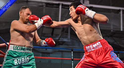of round two. Meng was an elongated southpaw with a deep stance