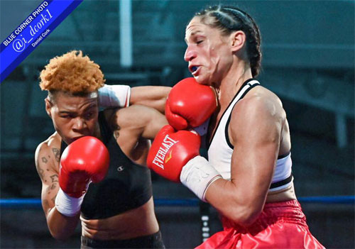 battled to a close round. Unique was stunned once by a good right in