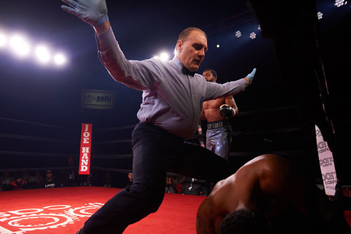 a right hand that sent him into the ropes. Referee Shawn Clark