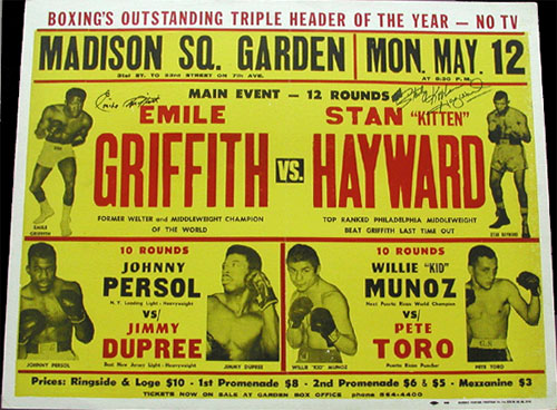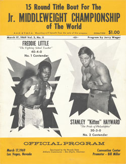 After three more fights, Hayward was matched with former champion Emile Griffith at the Spectrum. Griffith was heavily favored, yet Hayward squeaked out a split decision over the all-time great. The victory propelled Hayward into a fight with school teacher Freddie Little for the vacant world junior middleweight championship. Hayward was badly cut and Little won the crown by unanimous decision in Las Vegas. However, it was never hard for Kitten to find the bright side in any situation. What he remembered most about his only trip to Vegas was how all the celebrities in town came to watch the fight and of course, loved him. Of all the stars he met on the trip, Diana Ross made the biggest impression. She said he was her favorite fighter. Or so the story goes.