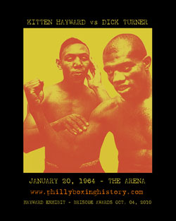 Kitten turned pro on June 10, 1959 in Scranton, PA, winning a four-round decision over Tommy Holmes. Three months later, he made his Philly debut (and the first bout he’s credited with on BoxRec) with a first round knockout of New Yorker Jim Johnson at South Philly’s Alhambra Athletic Club on September 24th. The venue was an early home base for Hayward, fighting six of his first seven bouts at the converted movie theater located at 12th and Morris. Before the end of 1959, Hayward had a points win over future boxing trainer Don Turner and a management contract with George Katz, the Philadelphia fight manager that had guided the likes of Gil Turner, Toothpick Brown, Cortez Jackson, and a number of other prominent boxers. Hayward’s nickname of “Kitten” came through his association with Katz. “His (Katz') girlfriend gave me that name,” Kitten once said. “She said most fighters are tough and ugly, but you’re more like a kitten.” Hayward loved the comparison and the name stuck, even though inside the ring he was far closer to a tiger. He won his first eight bouts, including two victories over Ike White in 1960. Hayward lost for the first time to local Bruce Gibson by decision, but avenged the defeat with his own eight round decision in his next bout. In 1961, he racked up three more wins, including a decision over experienced Philadelphian Carl Hubbard, and kept moving forward.