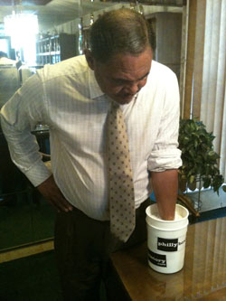 Kitten was also the subject of the “Kitten Hayward Exhibit” at the Briscoe Awards in 2010, where memorabilia, artwork, and photos were put on display to open up the Awards ceremony. As we prepared for the exhibit, Hayward allowed me to make a cast of his fist (IBHOF-style) and also donated one of his suits and “Mr. Kitten” shirts. However, Kitten floored me when he also dug out his classic blue and gold boxing robe and gave it to me. I offered to pay him for it, but he refused. He said, “I don’t have a son to give this to, so I want you to have it.” That was Kitten. Hayward was the first former boxer I ever tracked down when I started the PhillyBoxingHistory.com website. There was just something about him – the name, the look, and the legend. I knew I had to meet him. He was a classic Philly fighter, but as he taught me over and over again, Stanley “Kitten” Hayward was much more than that. And he was truly one of a kind.
