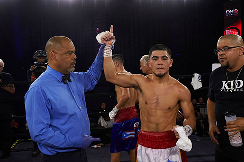 Allen vs. Barajas was the co-feature to an eight-round main event that pitted featherweights Edward Vazquez, Fort Worth, TX, against Jose Argel, Carolina, PR in a scheduled eight-rounder. Neither Vazquez,128.8 lbs., or Argel 127.2 lbs., packed a punch, yet both adhered to a slugger's fighting style. This made for a pitty-pat war for all eight heats. Vazquez won by shutout, 80-72 on all three cards, and improved his respectable record of 12-1, 3 KOs. Argel dipped to 8-4, 2 KOs. OTHER RESULTS
