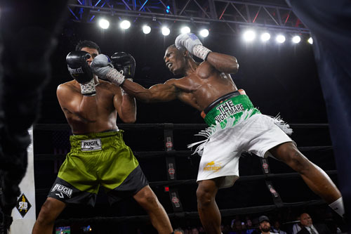 I knew that Javier Francisco Maciel (34 wins – 20 losses – 0 draws – 23 kos) of Argentina was in trouble when Oyeleye exited the dressing room and while on the runway – well-lit with pyrotechnics – jumped straight in the air like a Maasai warrior executing the Adamu – the traditional jumping dance. Had he been on a basketball court – his head would have cleared the rim. Without missing a beat, the Nigerian descended back to Earth and briskly made his way to the ring with his handlers - Coach Shar’ron Baker, Lando Rosa, Marcus Rosa and Khalib “Big Foot” Whitmore in tow for the eighth fight of the night. Ring announcer Alex Barbosa and referee Shawn Clark conducted the pleasantries, the gong sounded and “The Nightmare” stalked his prey like a lion on the Serengeti Plains – walking him down behind a stiff right jab – going to the body with right hooks and uppercuts as the Argentinian retreated as though he was avoiding contacting Covid-19. Maciel weighed in at 167lbs – ten pounds heavier than his opponent. I guess the extra weight provided him with the cushion to absorb the vicious body shots that Oyeleye unleashed. It was an excellent opening round for the Nigerian who showed little or no ring rust, dislodging his opponent’s mouthpiece with a crisp punch with ten seconds remaining. The action resumed at a frenetic pace in the second round with Oyeleye seemingly in rhythm – back in fighter’s mode – stalking like the late, great “King of the Serengeti” – Bob Junior – head of the pride who ruled for over seven years. Maciel appeared to be in survival mode and The Nigerian attacked the body with power, precision, and bad intentions. It was a wonderful display of the sweet science and I wanted to jump out of my seat and salute Coach Shar’ron Baker and team for all the wonderful work. It is one thing to witness a fighter and trainer in the gym. But it is truly special and gratifying to sit ringside and watch their hard work and chemistry unfold on fight night in front of a capacity crowd. Allow me to state that Oyeleye was like butter in a restaurant – he was on a roll!