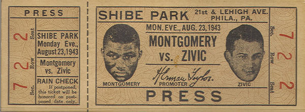| Aug. 23 | Fritzie Zivic | W10 | Philadelphia | Shibe Park | TICKET | |