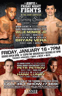 | Official Poster | Willie Monroe Jr W10 Bryan Vera (10 rounds / 160 lbs) | Unanimous | ||||