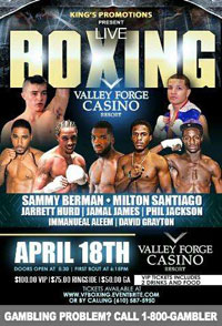 | Official Poster | Thomas LaManna W8 Ariel Vasquez (8 rounds / 147 lbs) | Unanimous | ||||