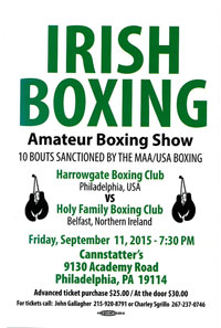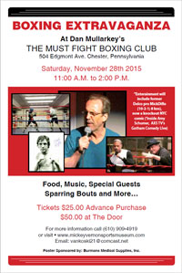 (SATURDAY) Dan Mullarkey's The Must Fight Boxing Club Chester, PA 504 Edgemont Ave., 19013 11:00 AM TV: None |